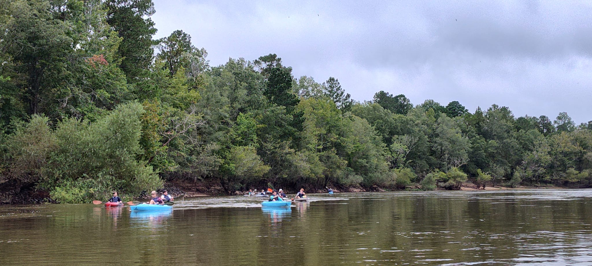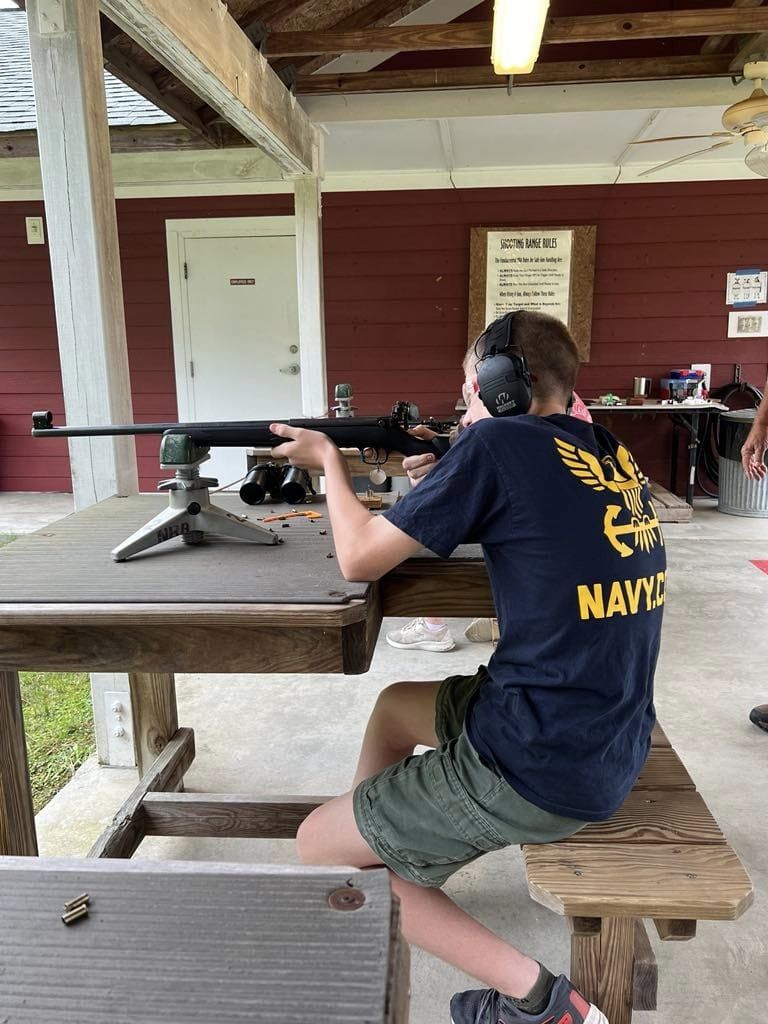 On Saturday morning, eight Scouts and two adults led by aquatics instructor Lisa Scarbrough took to the river for a two hour trek. Along the way, Scouts played kayak basketball, saw various wildlife (egrets, ospreys, great blue herons, and even gators), and enjoyed a mixture of light rain and sunshine for the float. Other Scouts enjoyed range and target activities at camp.